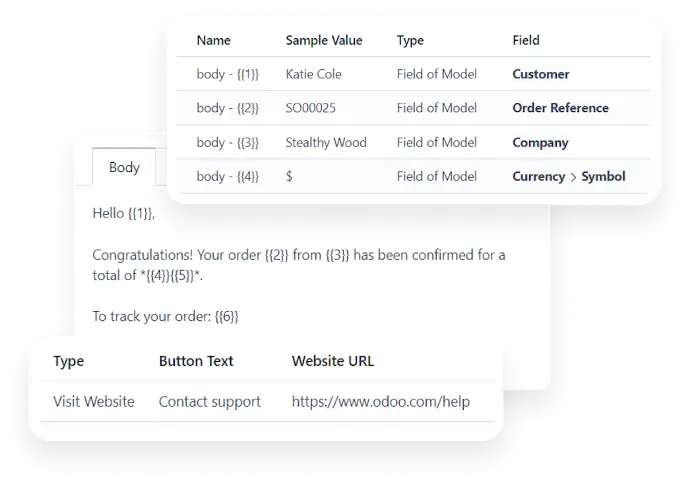 在数据库的任何Odoo应用程序中使用WhatsApp,始终一键之遥。